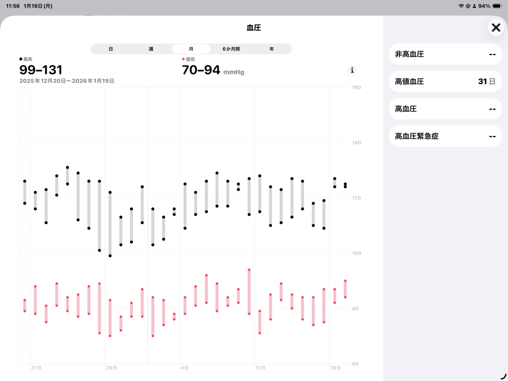 血圧の記録|レンジ内で推移(2026年1月)