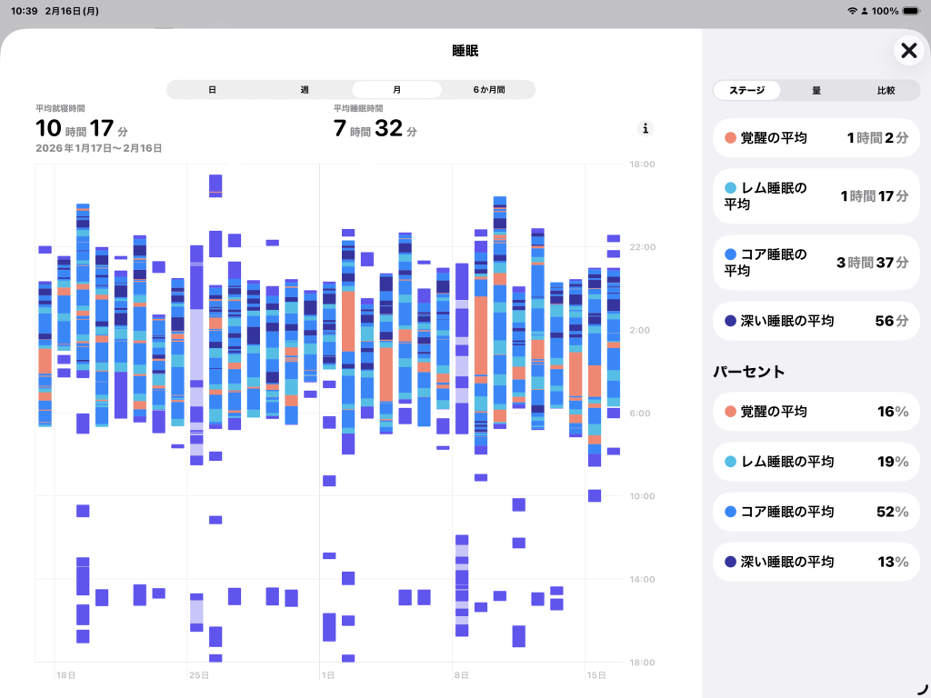 睡眠ステージの割合は以下の通り。